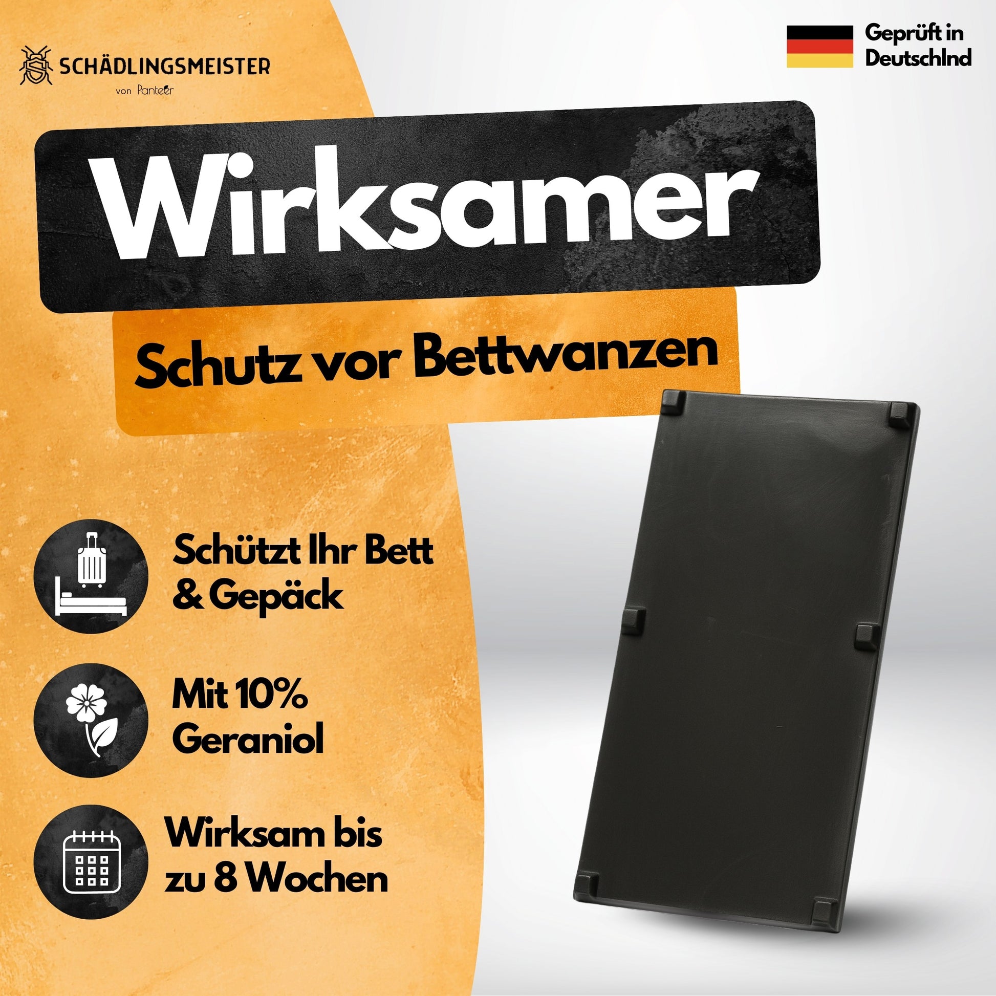 - 🔬 GEPRÜFTE QULITÄT – Unser Bettwanzen Abwehrplatten wurden nach höchsten Standards in Deutschland getestet. Wirkt gegen Bettwanzen (Cimex lectularius & Cimex hemipterus). Dieses Produkt ist ein PT19 Repellent.