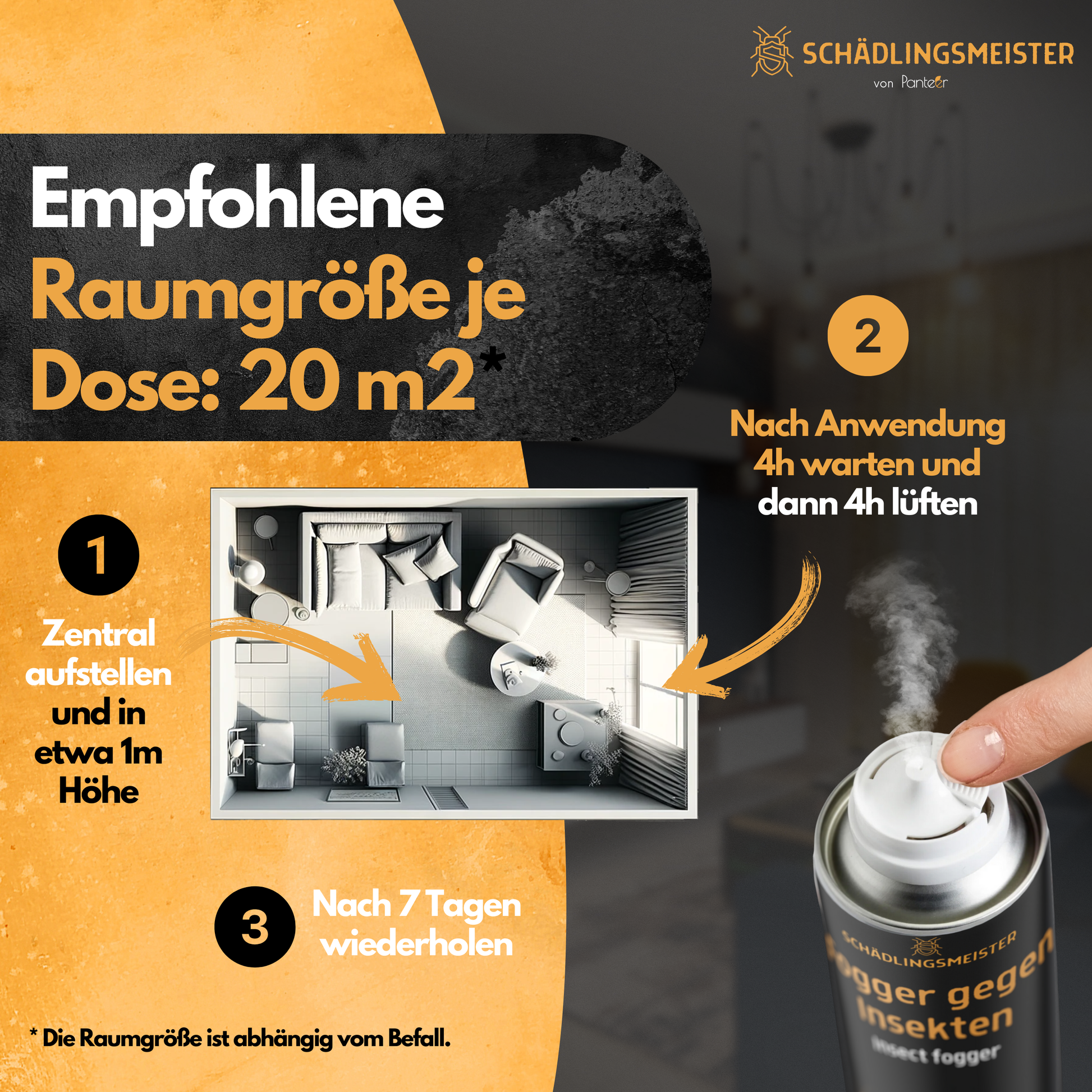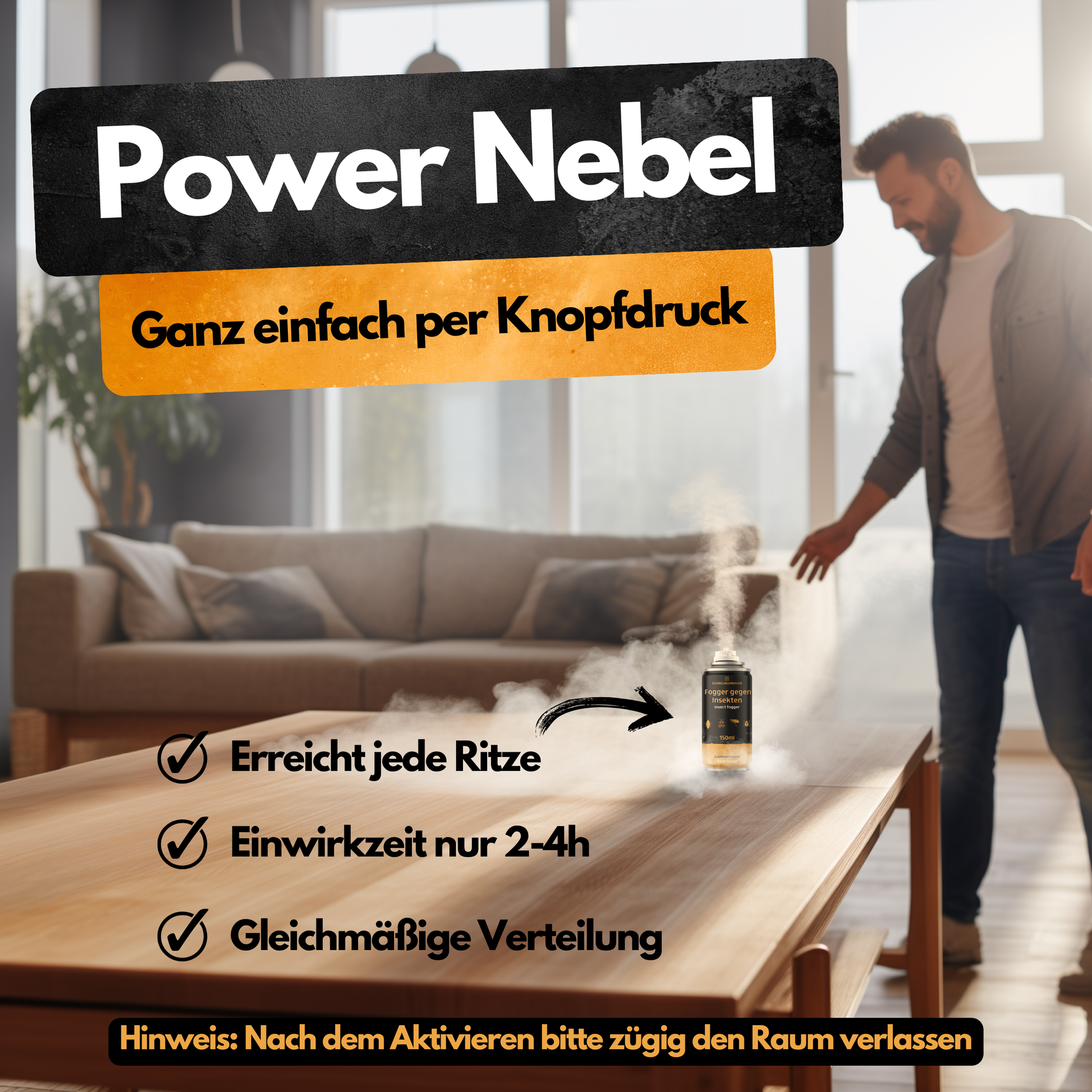 - ⚙️ AUTOMATISCHER VERNEBLER – Der Fogger verteilt sich gleichmäßig im Raum und schützt zuverlässig vor unerwünschtem Ungeziefer. Einfache Aktivierung durch Drücken – ganz ohne Aufwand. Nahrungsmittel, Aquarien, Futternäpfe etc. vorher abdecken oder wegstellen.