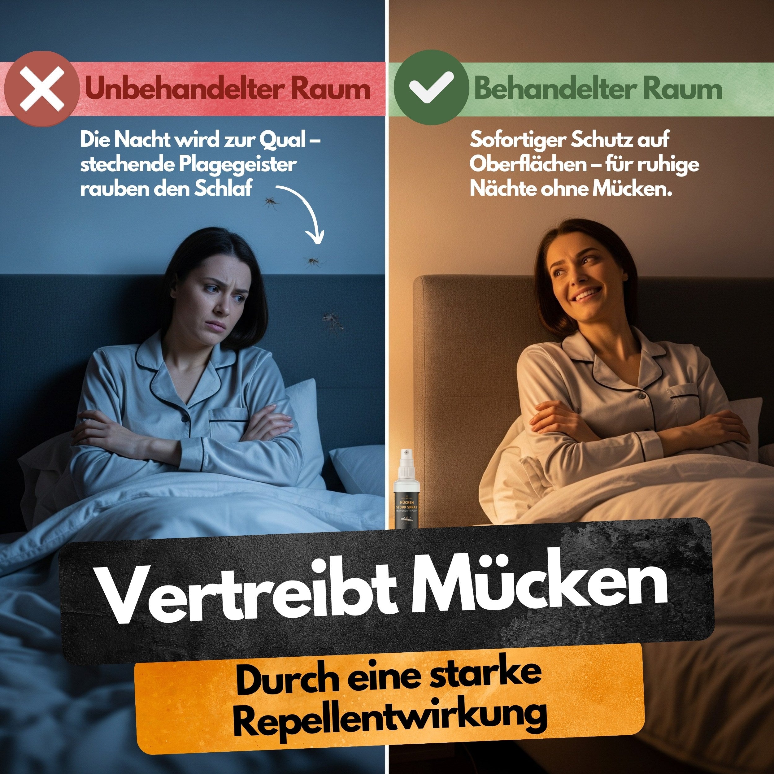 🛡️ SOFORTSCHUTZ VOR MÜCKEN – Schützen Sie sich und Ihr Zuhause ab der ersten Anwendung! Unser Mückenspray wirkt sofort abschreckend auf Mücken – ideal für Schlafzimmer, Wohnzimmer und alle Ruhebereiche. Endlich wieder ungestörter Schlaf – ganz ohne Summen!